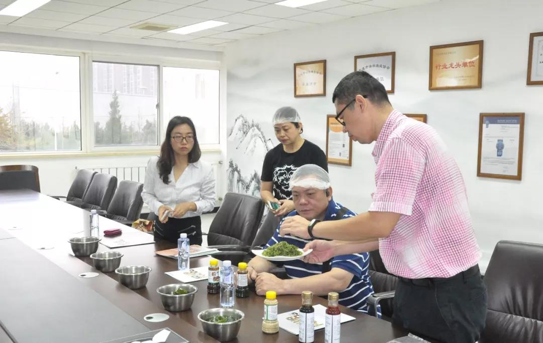 在浩和接待人員的引導下,中大餐飲一行人重點參觀了浩和央廚產業園的水產線及央廚合成線,并對車間的格局設計、HACCP執行在裝修上的要點、機器設備、路線規劃,人工操作等問題展開了深入探討和交流。與此同時,鑒于浩和食品在水產養殖和出口、尤其是海藻類原料方面所具備的優勢,原料類產品也是中大餐飲參觀的重點項目之一。