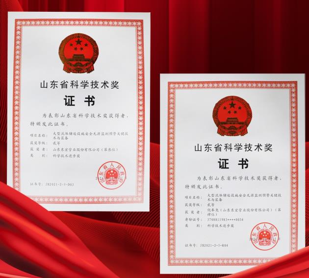 由山東省科學(xué)院激光研究所、中國(guó)石油化工股份有限公司青島安全工程研究院、山東東宏管業(yè)股份有限公司、山東微感光電子有限公司、濟(jì)寧四和供熱有限公司共同完成的“大型流體儲(chǔ)運(yùn)設(shè)施安全無源監(jiān)測(cè)預(yù)警關(guān)鍵技術(shù)與裝備”項(xiàng)目榮獲山東省科學(xué)技術(shù)獎(jiǎng)二等獎(jiǎng),公司排名第三位。總裁倪奉堯作為項(xiàng)目主要完成人受到山東省人民政府表彰。