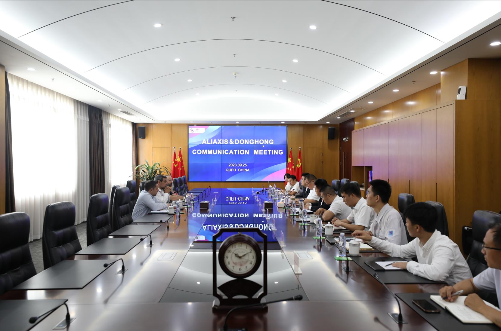 9月26日,Aliaxis集團領導一行再次蒞臨公司參加座談,董事長倪立營陪同,會上,董事長就公司發展及經營模式做了詳細介紹,雙方對后續業務合作模式及細節進行了深入探討。