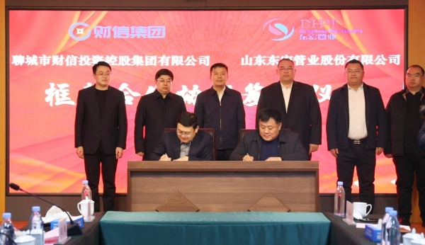 隨后,在各方見證下,徐慧然、倪奉堯代表雙方簽訂《聊城市財信投資控股集團有限公司 山東東宏管業股份有限公司框架合作協議》。